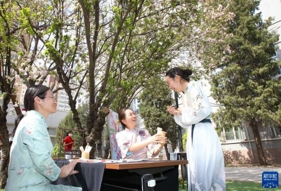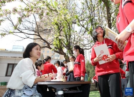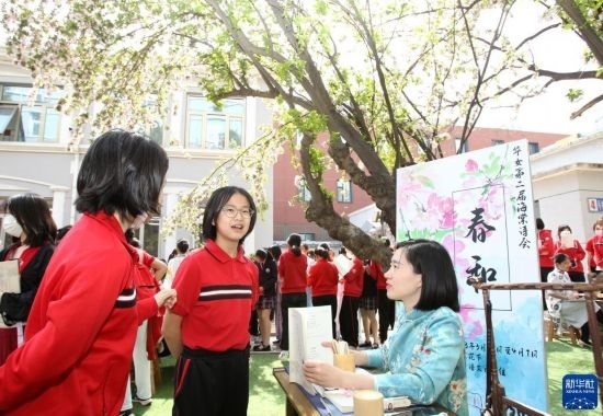 當(dāng)日,北師大實(shí)驗(yàn)華夏女子中學(xué)舉辦以“春和”為主題的第二屆“海棠詩(shī)會(huì)”。師生們選取有關(guān)“春天”“和煦”“生機(jī)”“美好”的詩(shī)歌,在校園的海棠樹(shù)下賞析吟誦,共享詩(shī)歌之美,傳承中華優(yōu)秀傳統(tǒng)文化。