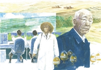 (六)如今,八畝薄田已發(fā)展為一百四十畝標(biāo)準(zhǔn)化玉米育種基地,通過(guò)實(shí)時(shí)監(jiān)控系統(tǒng),科技人員在鶴壁也可以指導(dǎo)海南育種基地種植。八十七歲的程相文依然常在玉米地里一待就是大半天?!耙涣7N子可以改變一個(gè)世界。希望再為農(nóng)民多培育出幾個(gè)好品種?!彼f(shuō)。