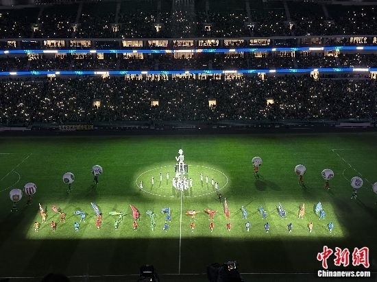 中超揭幕戰(zhàn)入場(chǎng)儀式。中新網(wǎng)記者 卞立群 攝