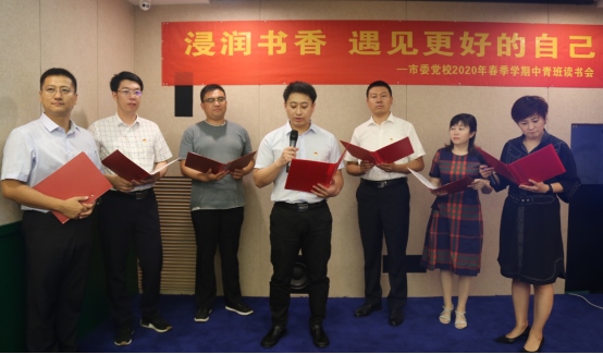 中青班班主任文濤老師對讀書會進行了點評,希望大家“好書不厭百回讀,站在不同立場讀書,便會有不同的體會,希望廣大青年干部進一步學(xué)習,努力踐行新時代黨員干部的使命,增強服務(wù)群眾的本領(lǐng)”。文濤老師以一首詩為讀書會推向高潮,贏得了學(xué)員們的陣陣掌聲。