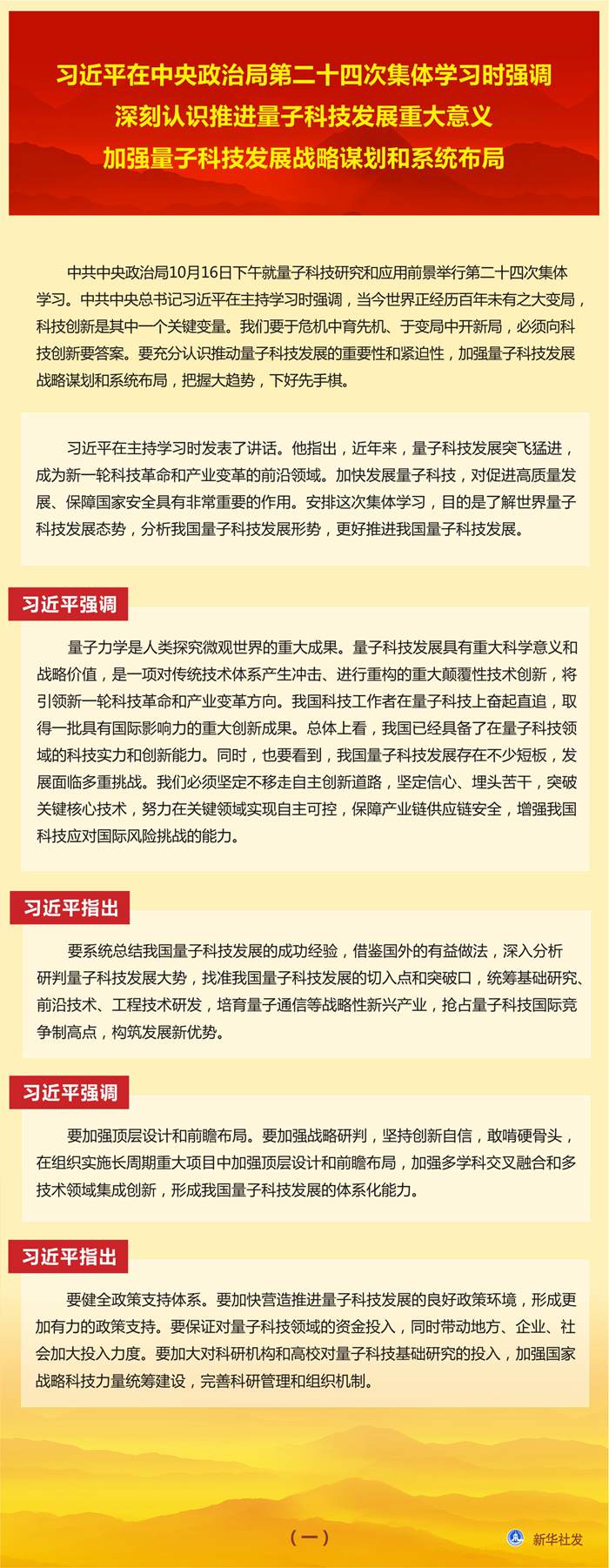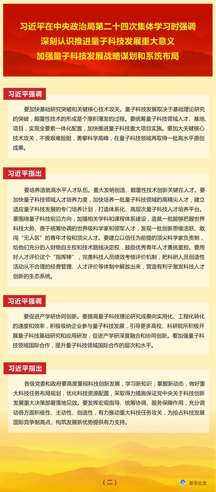 習近平在中央政治局第二十四次集體學習時強調(diào) 深刻認識推進量子科技發(fā)展重大意義 加強量子科技發(fā)展戰(zhàn)略謀劃和系統(tǒng)布局