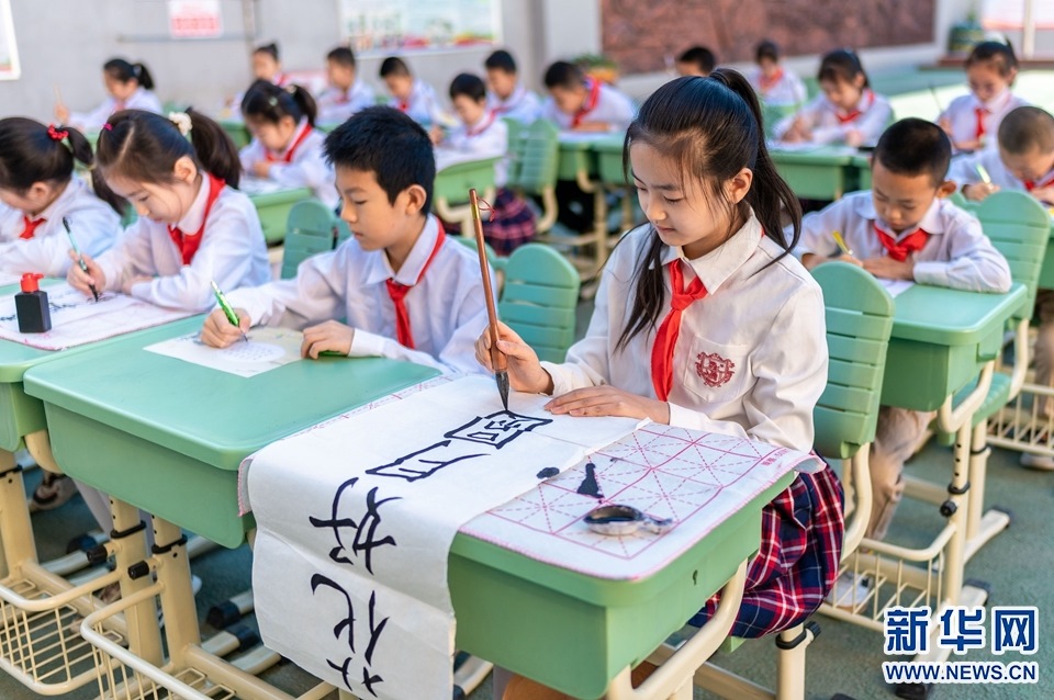 9月7日,呼和浩特市玉泉區(qū)恒昌店巷小學(xué)學(xué)生在書(shū)寫(xiě)中秋詩(shī)詞佳句。新華網(wǎng)發(fā)(丁根厚攝)