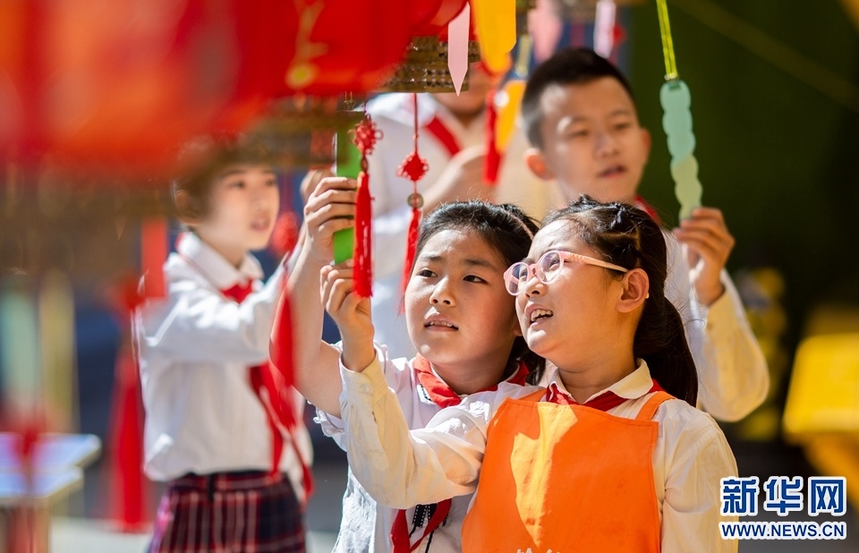 9月7日,呼和浩特市玉泉區(qū)恒昌店巷小學(xué)學(xué)生在猜燈謎。新華網(wǎng)發(fā)(丁根厚攝)