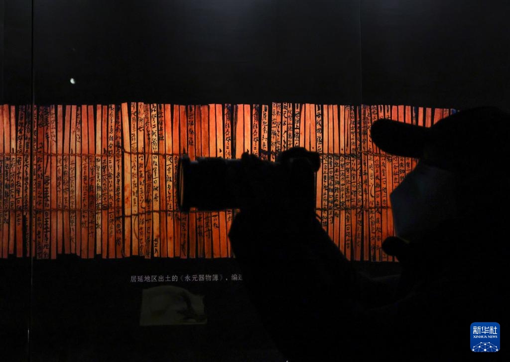 ??1月13日,記者在“居延漢簡”專題展上拍攝。