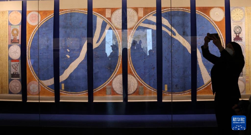 ??1月13日,“明清檔案”專題展出的明崇禎七年(1634)由大學士徐光啟和西洋傳教士湯若望共同參與繪制的《赤道南北兩總星圖》(仿制品)。