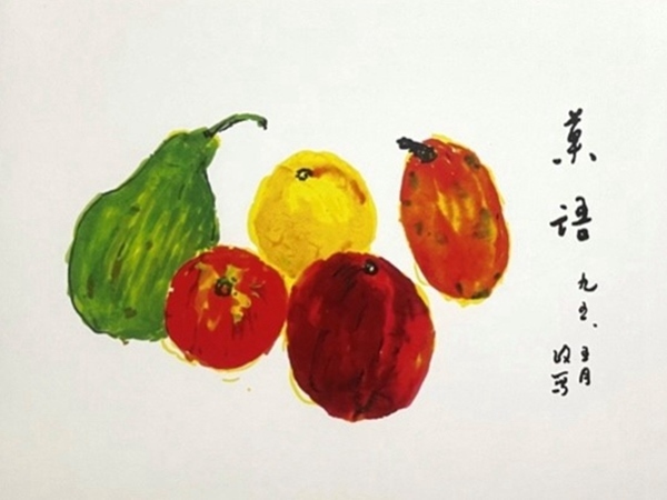 農(nóng)歷進入了立夏,桃李遍天下的李政道,對著面前果盤里紅黃綠紫的水果,畫了一張名為《果語》的寫生畫寄給鄭志鵬。在那個純真的時代,在這張小小的賀卡上,沒有祝福文字,只有簡潔的藝術(shù)表達和深切的內(nèi)心感受。這色彩豐富的《果語》,不知包含著多少祝福和希望啊!