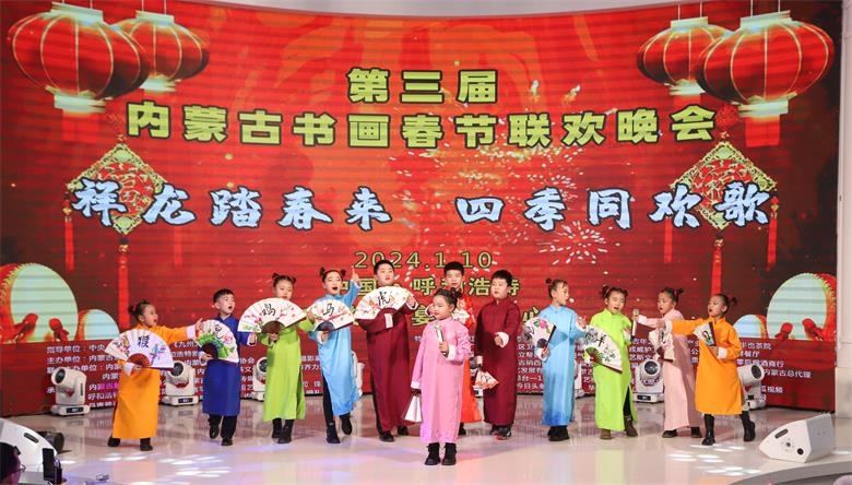 北疆新聞呼和浩特消息 1月10日,以“祥龍?zhí)ご簛? 四季同歡歌”為主題的第三屆內(nèi)蒙古書畫春節(jié)聯(lián)歡晚會(huì)在呼和浩特圓滿舉行。本次晚會(huì)匯聚了近500位內(nèi)蒙古老中青書畫家、演藝明星、政企嘉賓以及熱愛中國(guó)傳統(tǒng)文化的社會(huì)各界愛心人士代表,用書畫、歌舞、相聲等豐富多彩的形式,總結(jié)2023,展望2024。