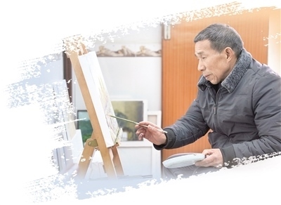 一手托著調(diào)色盤,一手舉著畫筆,眼前一個畫架,陳云發(fā)常常沉浸在自己的創(chuàng)作中。過去,陳云發(fā)以種田和做泥瓦工為生。藝術區(qū)建設期間,陳云發(fā)家中的幾間房子被張佰橋租來存放畫具。藝術家們創(chuàng)作時,陳云發(fā)也在旁邊看。后來,張佰橋送給陳云發(fā)一套畫具,“感興趣,就跟著學!”