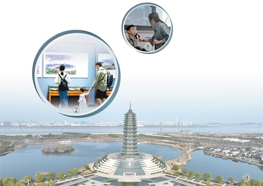 圖①:“水文化進百?!被顒幼哌M杭州師范大學(xué)附屬競潮小學(xué)。中國水利博物館供圖 圖②:游客在展區(qū)參觀。周方玲攝(影像中國) 圖③:中國水利博物館外景。中國水利博物館供圖