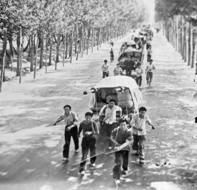 賀貴鑫1970年入團(tuán),當(dāng)時(shí)年富力強(qiáng)的他,成了8號(hào)板車的主力車手。說(shuō)是車手,其實(shí)更像纖夫。老人從口袋里摸出一張劇團(tuán)老照片,給記者看。泛黃的黑白照片中,一眾演員拽著繩索、拉著板車,行進(jìn)在鄉(xiāng)間小路上。身后板車上,裝滿戲服、道具和鍋灶等物品。