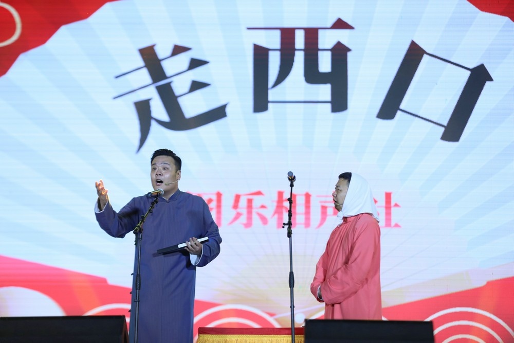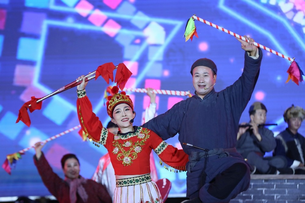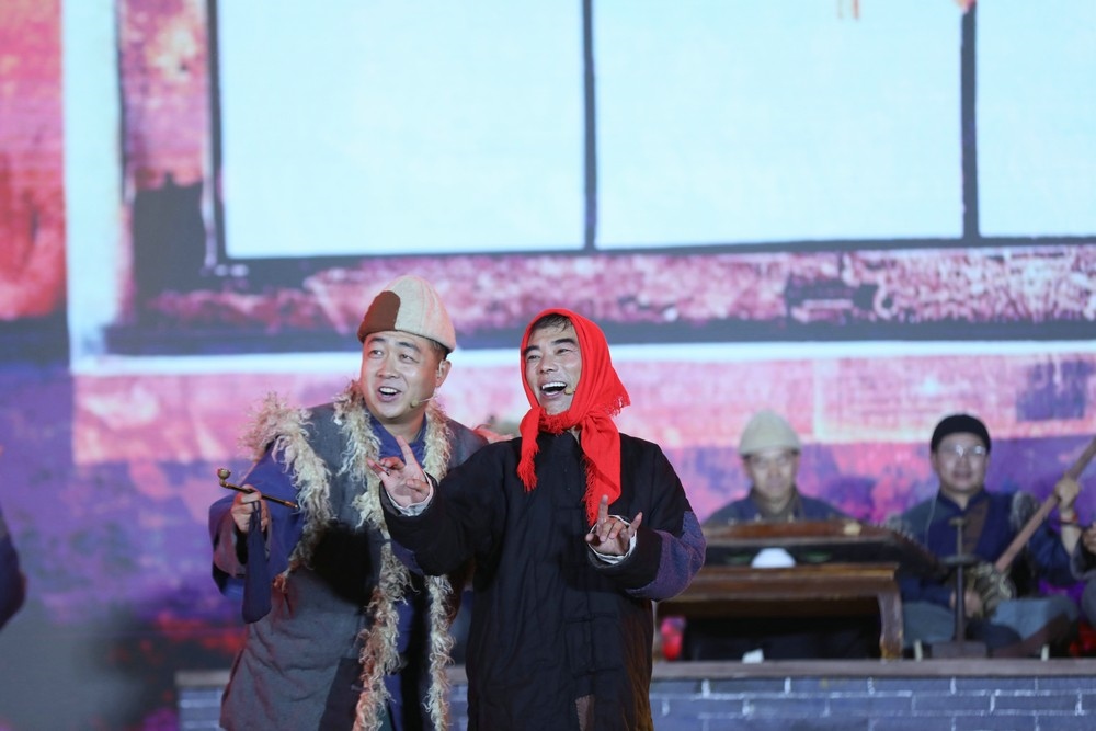 王占昕和王舜、王雨香表演二人臺傳統(tǒng)小戲《探病》