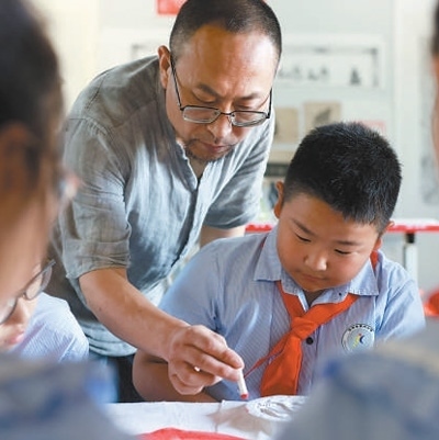 學(xué)生跟隨非遺傳承人學(xué)習(xí)體驗(yàn)拓印技藝。楊 晨攝(人民視覺(jué))