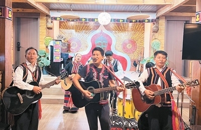 在云南省瀾滄拉祜族自治縣,拉祜族房東扎努的民宿在國(guó)慶節(jié)假期迎來滿房。今年4月,扎努改造自家老房子,把民族音樂與民宿相結(jié)合,開了一家音樂民宿——拉祜音宿。“拉祜族是能歌善舞的民族。我喜歡與人交流,喜歡鄉(xiāng)村風(fēng)光和家鄉(xiāng)氣候,所以選擇回鄉(xiāng)開民宿?!弊鳛榉繓|,扎努常常帶游客一起唱歌跳舞,表演他創(chuàng)作的《我在瀾滄等你》《快樂拉祜》等歌曲,并向他們介紹拉祜族的民族歷史和文化。