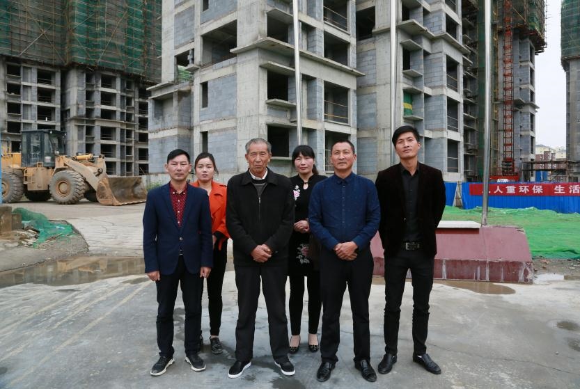 △這是晏傳忠(前排左二)一家在工地上的照片(合影時(shí)二兒子晏家勇不在場。照片由黃久生提供)