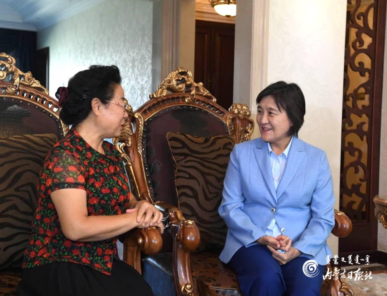 9月10日上午,自治區(qū)黨委副書記、自治區(qū)主席布小林慰問呼和浩特市第二中學(xué)退休教師姜超霞(右)。內(nèi)蒙古日報社融媒體記者 韓卿立 攝