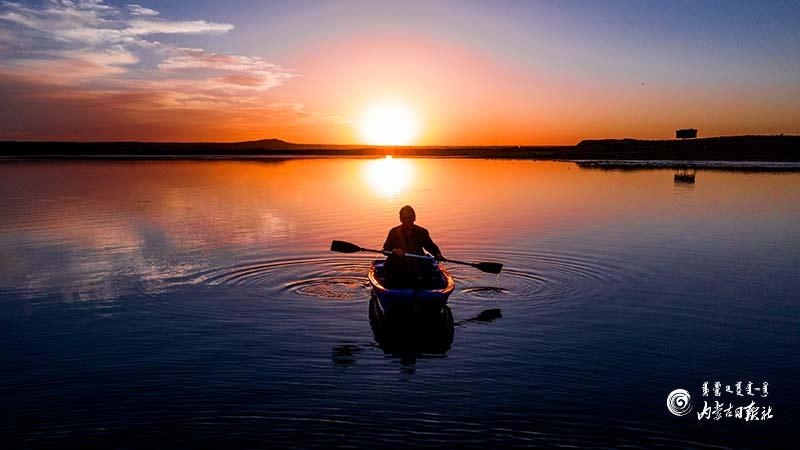山氣日夕佳,飛鳥相與還。盛夏時(shí)節(jié),鄂爾多斯遺鷗國家級(jí)自然保護(hù)區(qū)大批夏候鳥、留鳥進(jìn)入育雛季,成千上萬只候鳥時(shí)而盤旋云端、時(shí)而靜謐游憩。夕陽西下,水天一色、百鳥爭(zhēng)鳴,蔚為壯觀。
