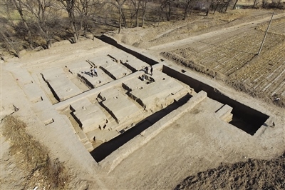 11月10日,航拍呼和浩特市玉泉區(qū)沙梁子村的西漢中晚期疑似大型糧倉建筑基址發(fā)掘現(xiàn)場(chǎng)。近日,內(nèi)蒙古文物考古研究所與中山大學(xué)組成的聯(lián)合考古隊(duì)在沙梁子村揭露一處大型夯土高臺(tái)建筑基址,根據(jù)出土的磚瓦材料及夯臺(tái)建筑的形制推測(cè),可能是一座西漢時(shí)期的大型倉儲(chǔ)建筑,距今約2000多年。這是我國迄今發(fā)現(xiàn)規(guī)模最大的漢代單體夯土高臺(tái)建筑。(內(nèi)蒙古日?qǐng)?bào)記者 孟和朝魯 實(shí)習(xí)生 郭明午 攝)