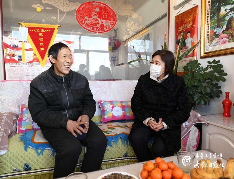 1月5日,自治區(qū)黨委副書(shū)記、自治區(qū)主席布小林在烏蘭察布市興和縣城關(guān)鎮(zhèn)下崗就業(yè)困難人員楊玉英家里,布小林與她促膝交談,詳細(xì)了解目前生活情況。內(nèi)蒙古日?qǐng)?bào)記者 韓卿立 攝