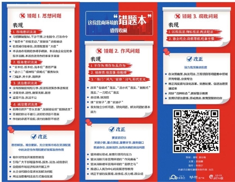 優(yōu)化營商環(huán)境,離不開社會各界的大力支持和積極參與,讓全社會知道我們正在做什么、還要做什么,才能有效強信心、暖人心、聚民心。要加大宣傳力度,全方位、常態(tài)化開展優(yōu)化營商環(huán)境政策法規(guī)宣傳。要發(fā)揮好輿論監(jiān)督作用,通過曝光一批反面典型警示一片,讓廣大干部心有所戒、行有所止,讓破壞營商環(huán)境的人和事無藏身之處、無立錐之地。要大力選樹先進典型,放大示范帶動效應,讓見賢思齊、比學趕超成為一種良好風尚,在全社會形成“人人都是營商環(huán)境、事事都是營商環(huán)境、處處都是營商環(huán)境”的濃厚氛圍。