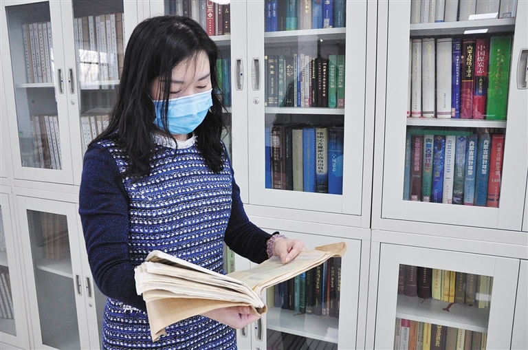 內(nèi)蒙古自治區(qū)檔案館保管利用部副主任師念君查閱《告蒙古同胞書(shū)》。見(jiàn)習(xí)記者 袁寶年 攝