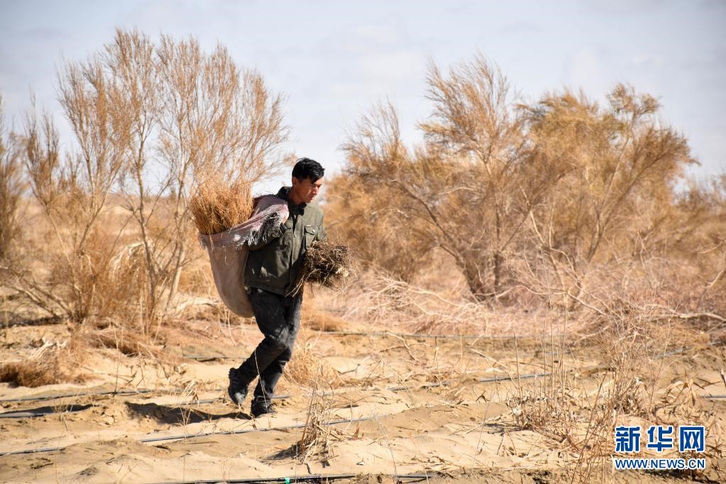 當(dāng)?shù)匕傩諒闹惺芤妗?年前,在外打工的艾沙江·買買提明回到且末縣,承包了鄉(xiāng)里的1000畝大蕓地,去年采收了100多公斤的大蕓種子,價值10多萬元。截至2020年底,且末縣梭梭林下大蕓接種面積達到5.9萬畝。