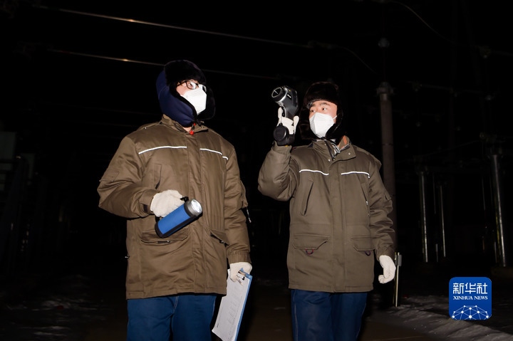國家電網(wǎng)滿洲里220千伏變電站位于滿洲里市西郊,負(fù)責(zé)給全市三分之一的用戶供電。夜越來越深,“95后”值班員王東亞和同事拿著測溫設(shè)備,開始對戶外輸變電設(shè)備進行檢查。他們深一腳淺一腳地踩著雪,仔細(xì)檢查高壓開關(guān)外的伴熱帶是否正常工作?!拔覀兣吕洌O(shè)備更怕冷,天越冷越要加強巡視。”王東亞說。