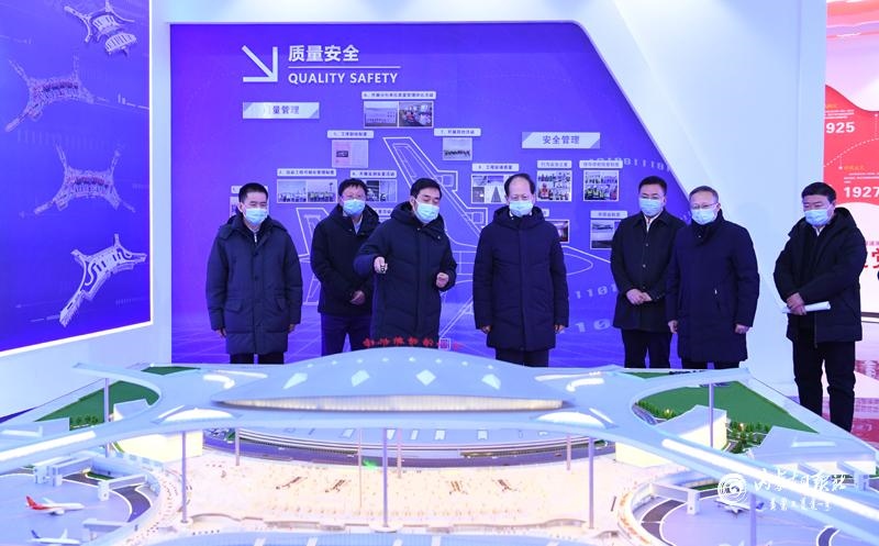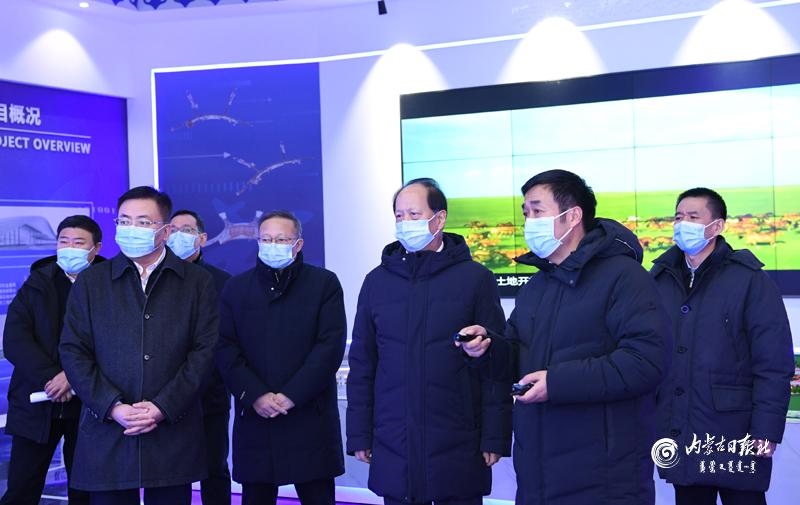 1月18日下午,自治區(qū)黨委書記、人大常委會(huì)主任石泰峰在呼和浩特新機(jī)場智慧展廳,聽取新機(jī)場主體建設(shè)情況介紹。內(nèi)蒙古日?qǐng)?bào)社融媒體記者 袁永紅 攝