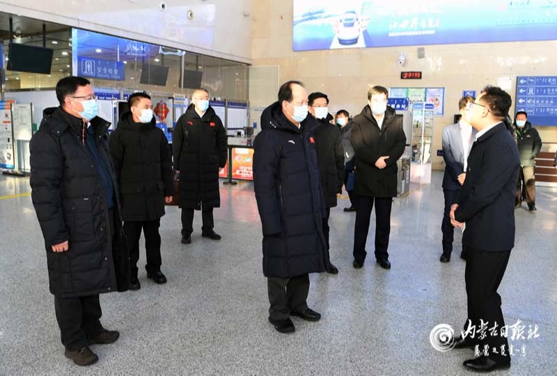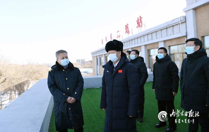 2月4日,自治區(qū)黨委書記、人大常委會主任石泰峰來到二連浩特鐵路車站,了解疫情防控和中歐班列運(yùn)行情況。內(nèi)蒙古日報(bào)社融媒體記者袁永紅攝
