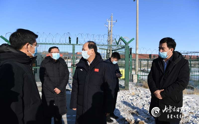 2月4日,自治區(qū)黨委書記、人大常委會主任石泰峰來到二連浩特市環(huán)宇物流園區(qū),了解疫情防控和作業(yè)運(yùn)行情況。內(nèi)蒙古日報(bào)社融媒體記者袁永紅攝