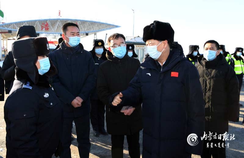 2月4日,自治區(qū)黨委書記、人大常委會主任石泰峰來到錫林郭勒盟二連浩特國道208卡口,了解人員、車輛出入檢查情況。內(nèi)蒙古日報(bào)社融媒體記者袁永紅攝