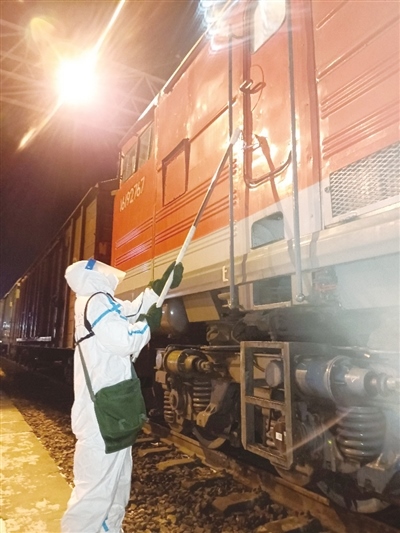 田潤(rùn)澤告訴記者,“通過(guò)‘無(wú)接觸’查驗(yàn)、磁條封控車門,避免了跨境列車司機(jī)與邊檢、海關(guān)工作人員的直接接觸,最大限度降低交叉感染的風(fēng)險(xiǎn),確保司機(jī)在國(guó)內(nèi)停留的數(shù)小時(shí)內(nèi)不下車、不與外界接觸?!?/p>