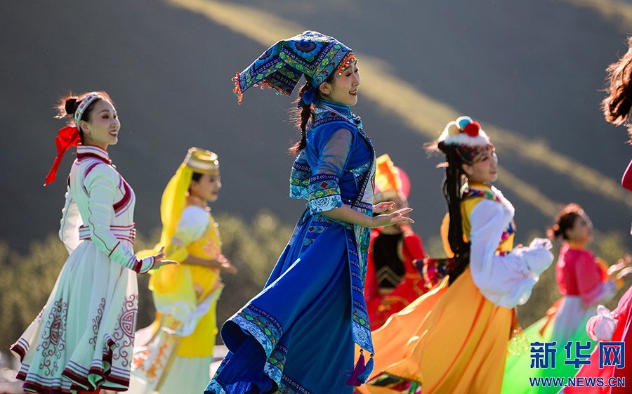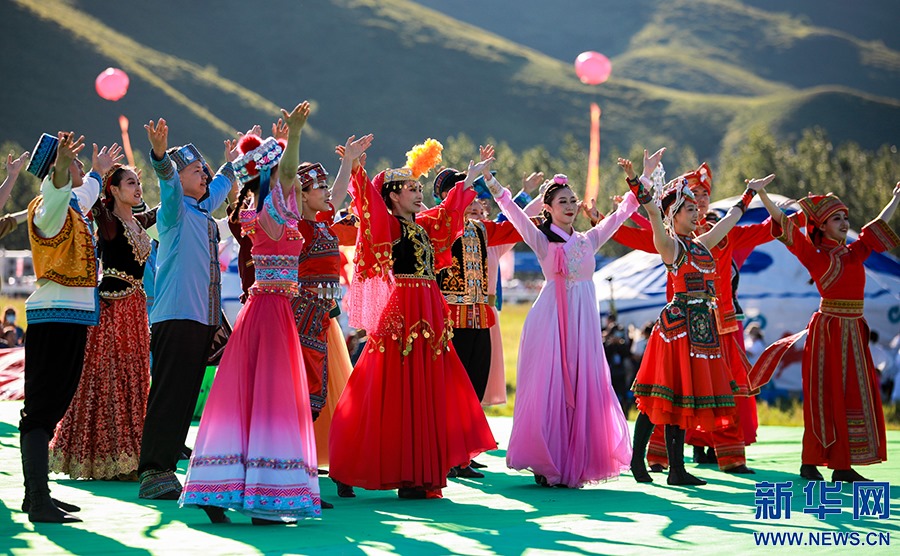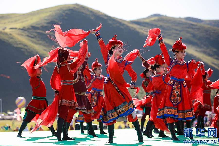 8月8日,烏蘭牧騎的隊(duì)員在開(kāi)幕式上踏歌起舞。新華網(wǎng)發(fā)(丁根厚攝)