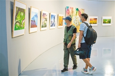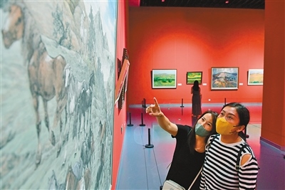 “美麗中國·內(nèi)蒙古形象”主題美術作品展聚焦“兩個打造”,119幅美術作品以全區(qū)12個盟市獨特的自然風光、人文景觀、生態(tài)面貌為底色,描繪內(nèi)蒙古草之茂、林之郁、湖之美、水之秀、田之沃、沙之魅,全面展示了內(nèi)蒙古真善美的形象。記者 王磊 攝