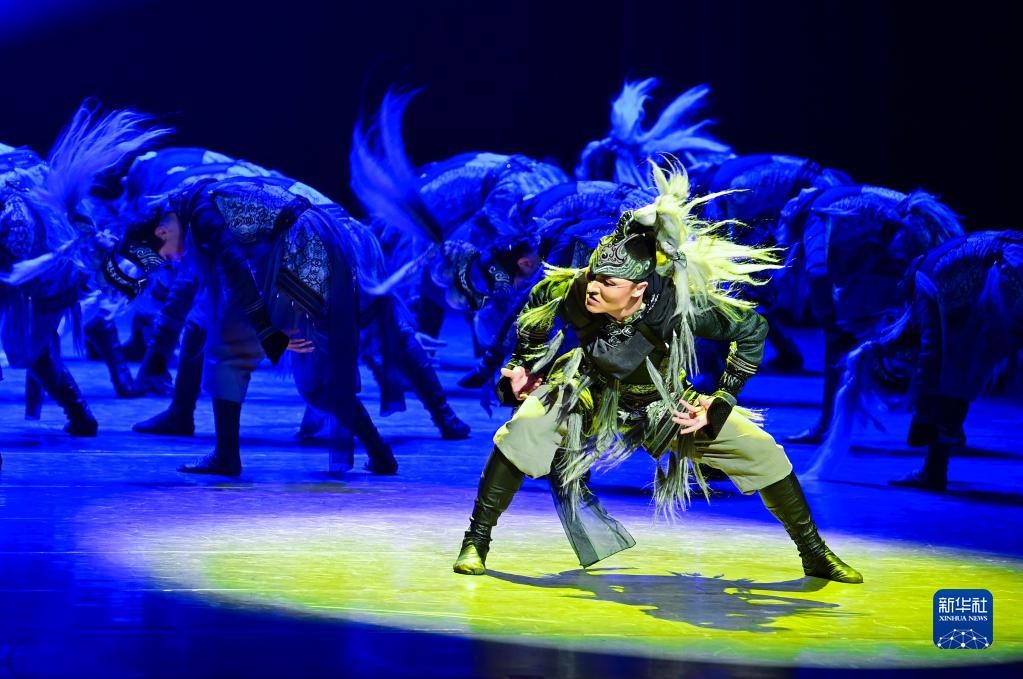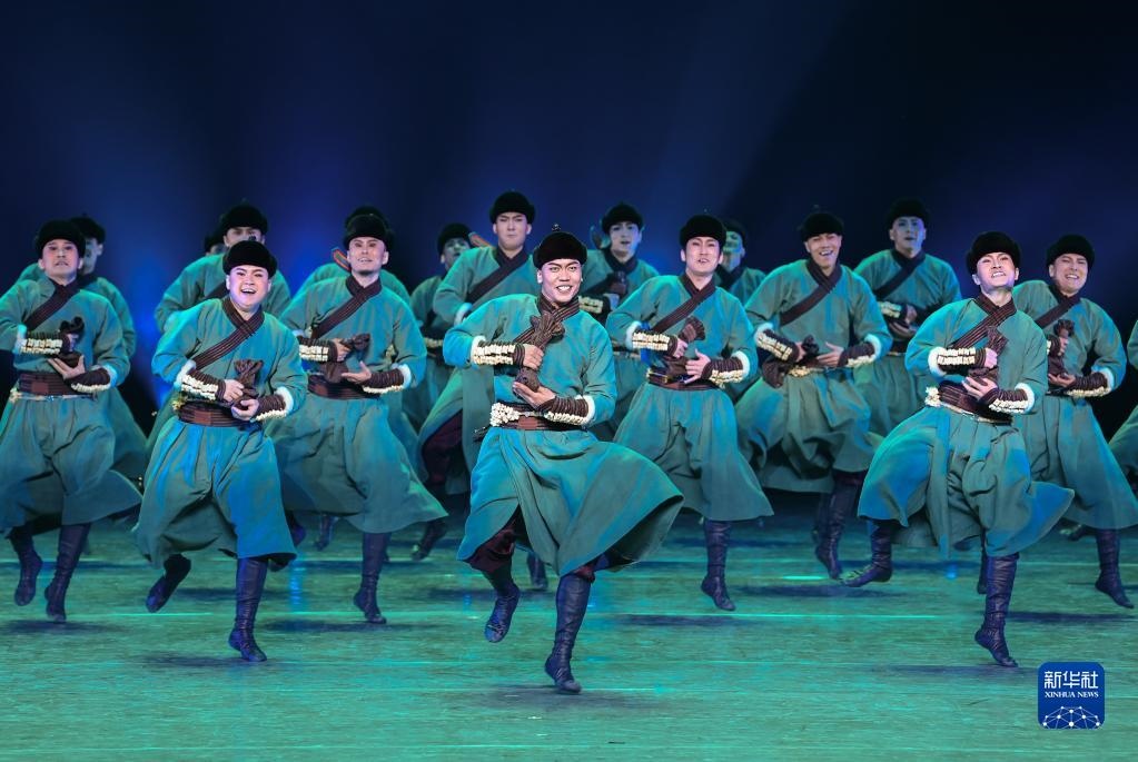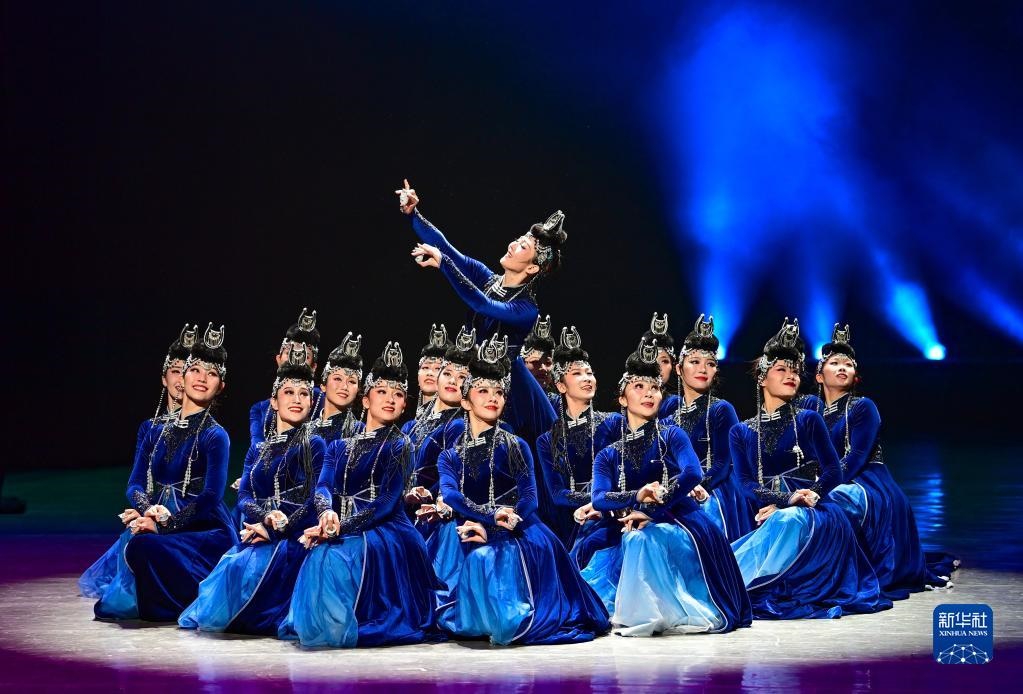 3月27日,內蒙古自治區(qū)直屬烏蘭牧騎參賽演員表演群舞《風之馬》。新華社發(fā)(王正攝)