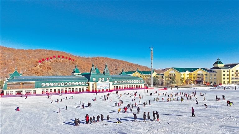 在赤峰市道谷南山滑雪場,雪地摩托、雪圈沖浪、冰上自行車、迷你冰壺、冰上爬犁等豐富多彩的冰雪娛樂項目吸引著游客參與到冰雪運動中來。