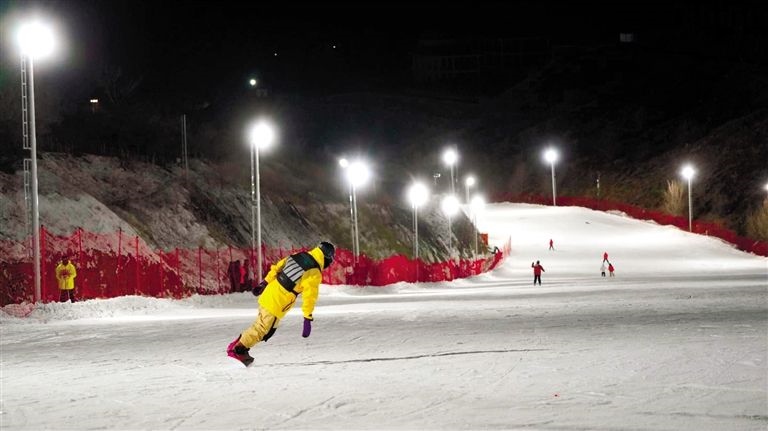 滑雪愛好者在赤峰市道谷南山滑雪場滑雪。李富 攝
