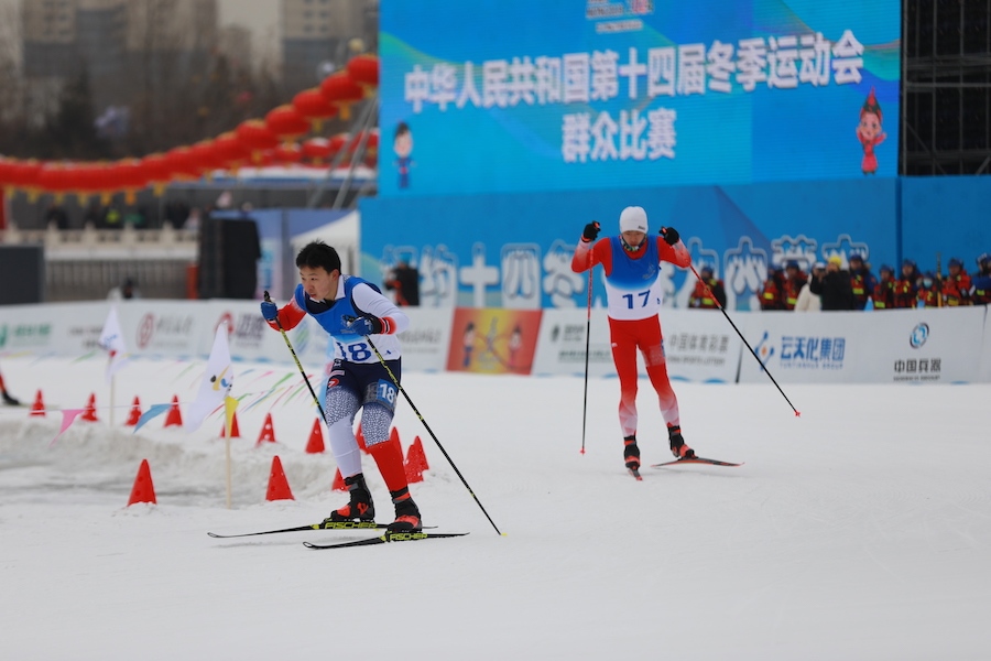 1月13日,“十四冬”群眾比賽在呼和浩特東河冰場開賽。在上午進(jìn)行的男子越野滑雪4*1.5km預(yù)賽中,內(nèi)蒙古代表隊(duì)獲得小組第二。