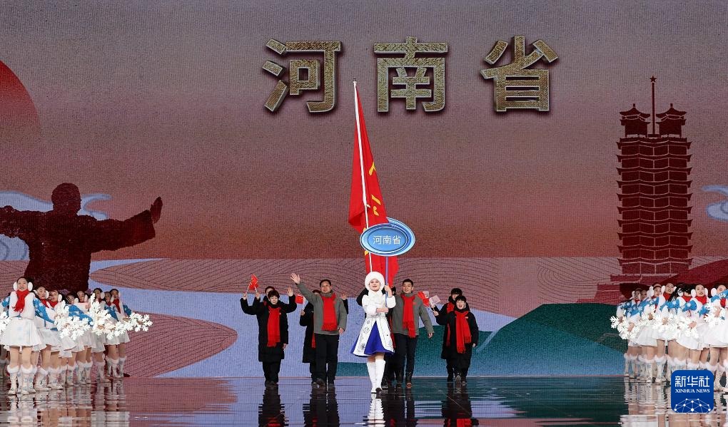 ??2月17日,河南省體育代表團在開幕式上入場。新華社記者 李博 攝