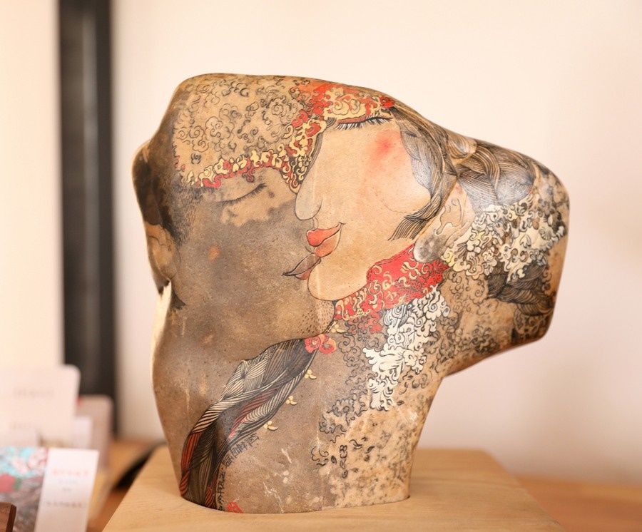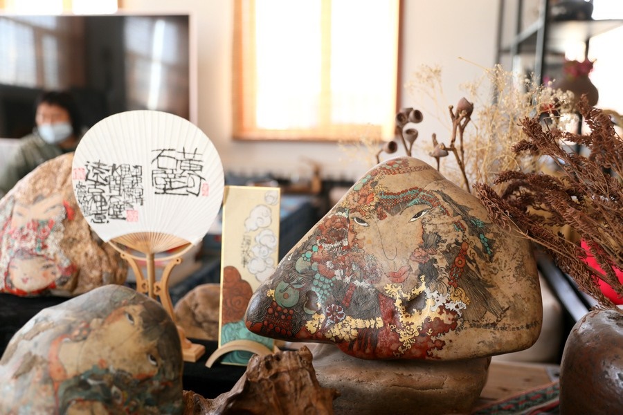 自2016年起,魯婷開(kāi)始用黃河石畫的形式,講述母親河的故事。2018年,魯婷在西行客棧建立了自己的工作室,向社會(huì)各界免費(fèi)開(kāi)放,用黃河石彩繪的方式,為北疆文化注入新的思想和內(nèi)涵。