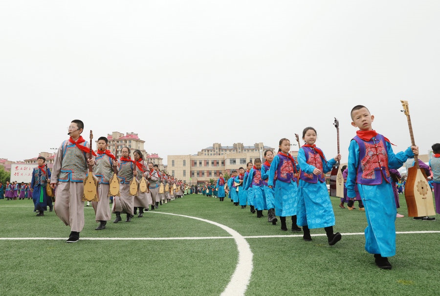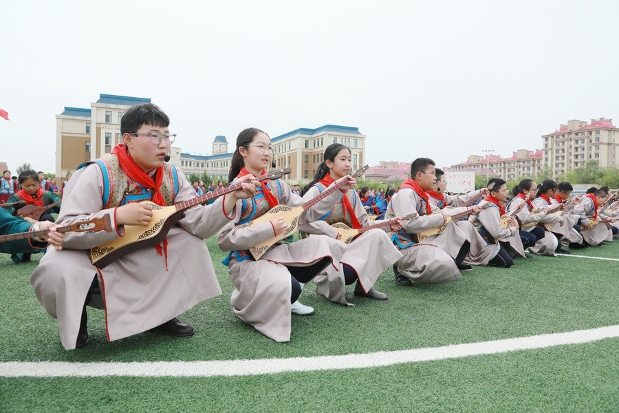 “今天參加4個(gè)‘千人文化’特色課程感到非常高興和開(kāi)心。這4個(gè)課程讓我們的文化素養(yǎng)得到質(zhì)的提升,愉悅了身心?!蔽迥昙?jí)125班的哈斯寶勒爾剛剛參加完特色課程展示。哈斯寶勒爾表示,這4個(gè)課程,比如玩象棋的話(huà),可以提升自己的思維邏輯,讓自己的思路更加清晰,能夠提升學(xué)習(xí)成績(jī);練習(xí)筷子舞,可以讓我們的心情變得更加愉悅,通過(guò)練習(xí)跳舞,讓我們身體的柔韌性更強(qiáng);唱江格爾,能鍛煉我們的唱歌能力,還能讓我們把非物質(zhì)文化遺產(chǎn)傳承下去;踢足球可以鍛煉我們的體能。