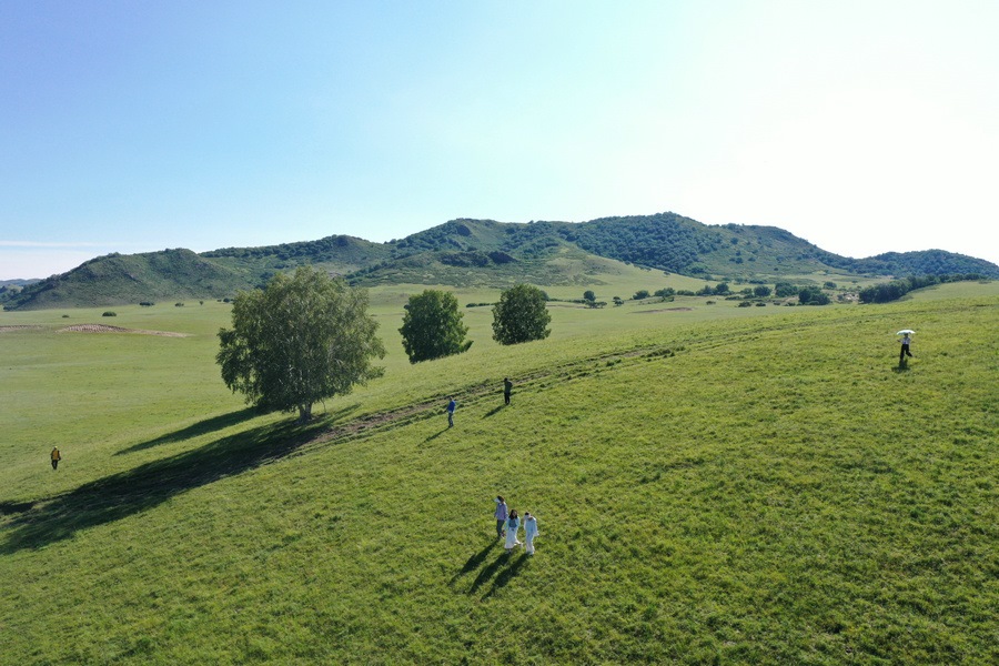 8月2日,游客在烏蘭布統(tǒng)草原游玩
