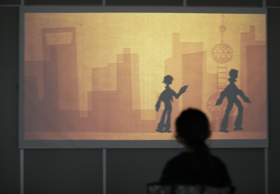 一名小朋友在觀看動畫
