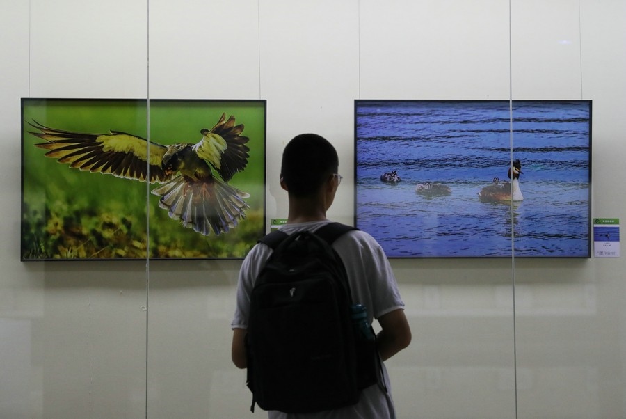 游客參觀“多彩的家園”野生動植物攝影作品展