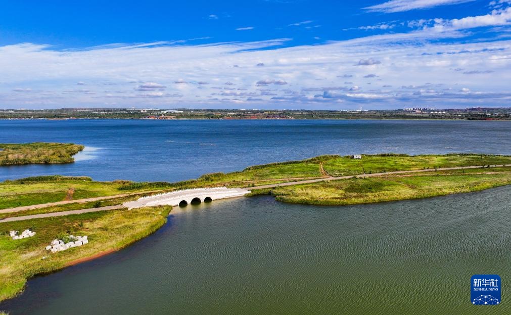 ??這是9月20日拍攝的鄂爾多斯市紅海子濕地(無人機(jī)照片)。