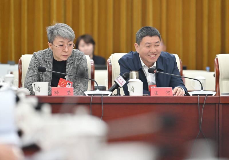 3月7日,全國人大代表莊河(右)說,中國鐵路呼和浩特局集團有限公司將積極落實政府工作報告的相關(guān)要求,加強鐵路基礎(chǔ)設(shè)施建設(shè),優(yōu)化客運產(chǎn)品,實現(xiàn)多樣供給,大力發(fā)展鐵路現(xiàn)代物流,發(fā)揮好鐵路對推動經(jīng)濟社會高質(zhì)量發(fā)展的支撐保障作用。記者 馬建兵 攝