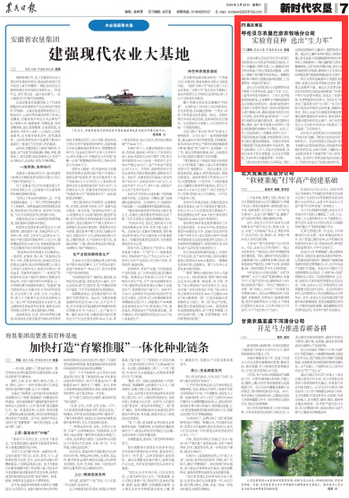 2025年3月29日,《農(nóng)民日?qǐng)?bào)》第7版刊發(fā)題為《呼倫貝爾農(nóng)墾巴彥農(nóng)牧場(chǎng)分公司實(shí)驗(yàn)育良種 選出“生力軍”》的文章,報(bào)道了近年來,巴彥農(nóng)牧場(chǎng)分公司始終堅(jiān)持“科技興農(nóng)”戰(zhàn)略,不斷加大在農(nóng)業(yè)科研方面的投入。農(nóng)業(yè)科技園區(qū)實(shí)驗(yàn)室作為技術(shù)創(chuàng)新與應(yīng)用的前沿陣地,承擔(dān)著多項(xiàng)重要的科研任務(wù),在種子培育、土壤改良、病蟲害防治等多個(gè)領(lǐng)域開展了深入研究與實(shí)踐。