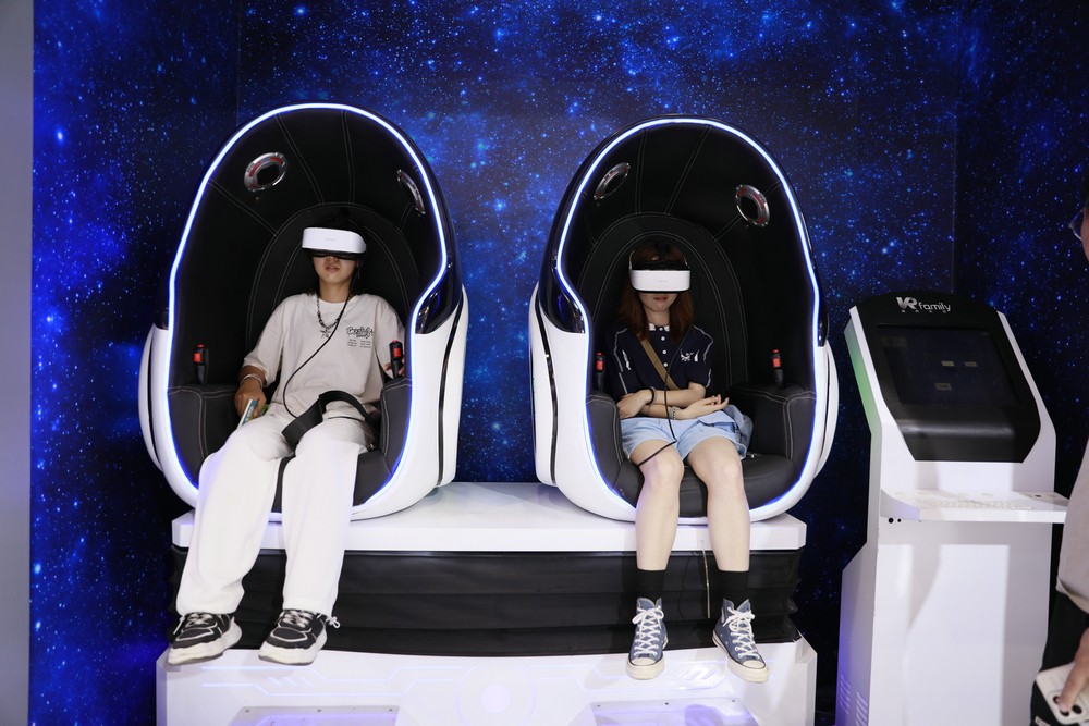 阿拉善展區(qū)游客正在體驗“太空之旅”