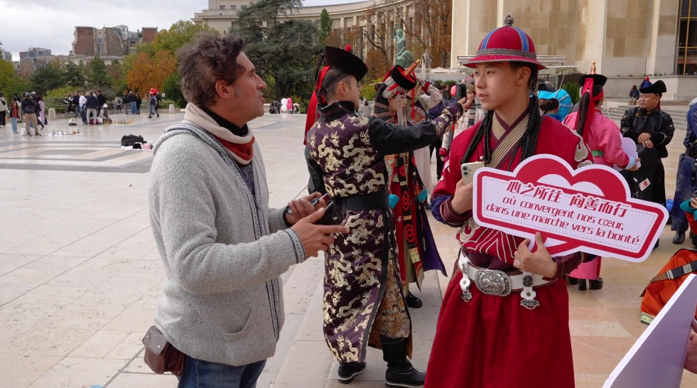 在法國巴黎市的夏約宮廣場、埃菲爾鐵塔、香榭麗舍大街、巴黎圣母院、凱旋門、國際大學城,比利時布魯塞爾市大廣場、藝術(shù)山等地,阿拉善的烏蘭牧騎演員開啟了一場場融合蒙古族華服走秀與快閃歌舞表演,“阿拉善在哪里?”“這服裝太酷了!”“怎么有萬馬奔騰的感覺!”“想去看一看!”“這沙漠也太壯觀了!”快閃路演吸引了法國、比利時以及來自世界各地的游客駐足觀看,喝彩不斷,沉醉其中。