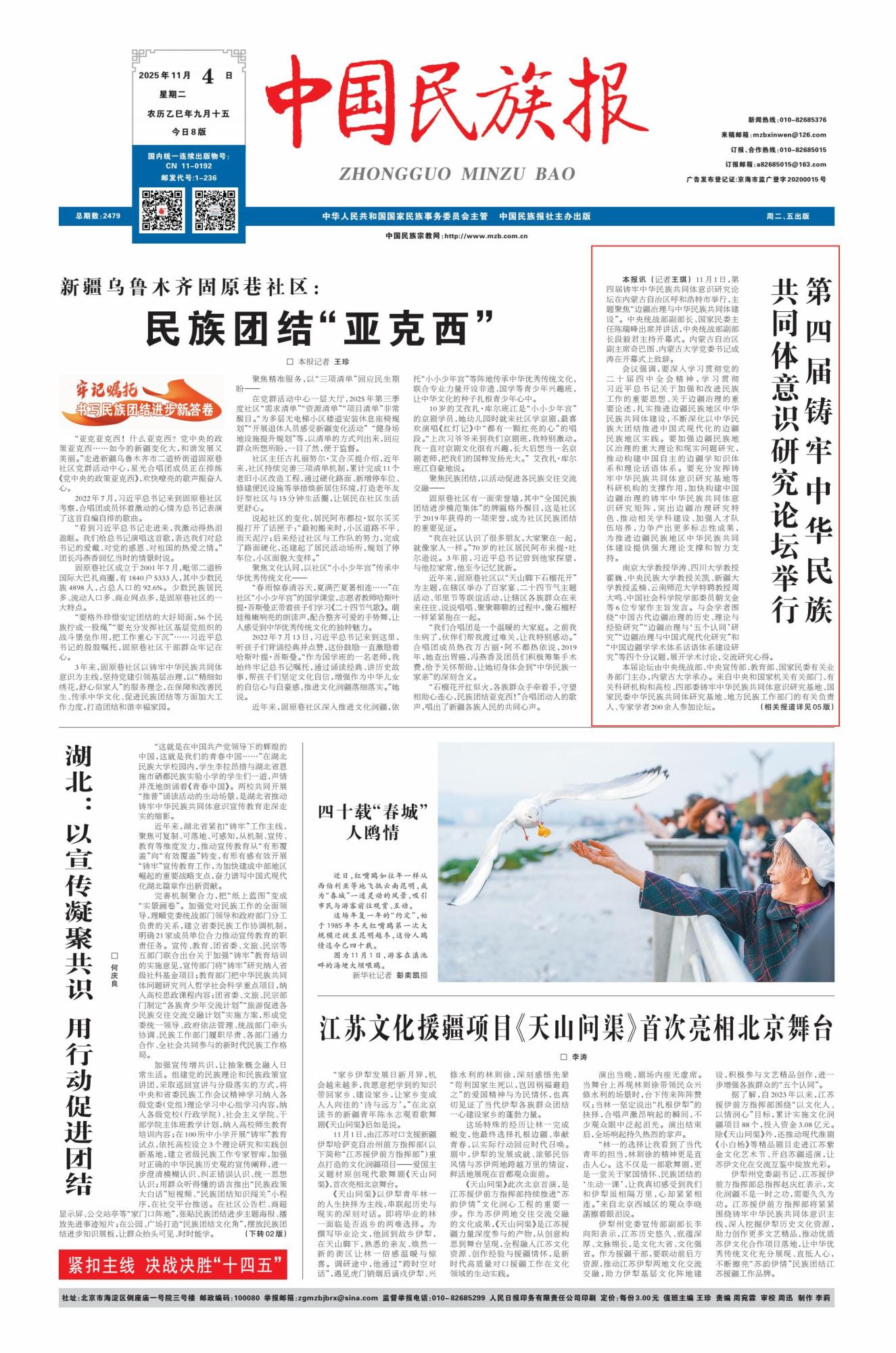 2025年11月4日,《中國民族報(bào)》頭版刊發(fā)題為《第四屆鑄牢中華民族共同體意識研究論壇舉行》的文章,報(bào)道了第四屆鑄牢中華民族共同體意識研究論壇于11月1日在內(nèi)蒙古自治區(qū)呼和浩特市舉行,主題聚焦“邊疆治理與中華民族共同體建設(shè)”。