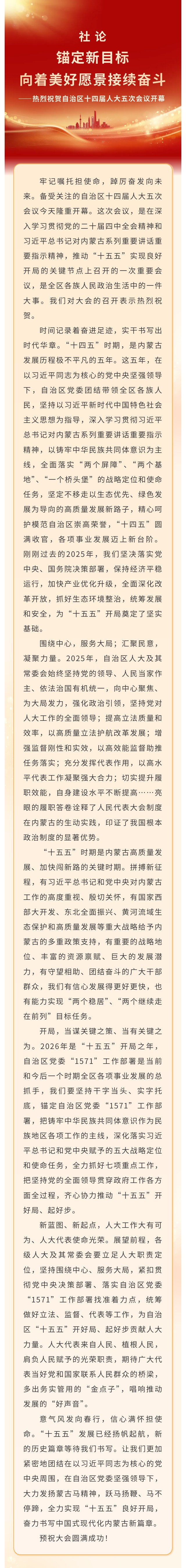 社論|錨定新目標(biāo),向著美好愿景接續(xù)奮斗——熱烈祝賀自治區(qū)十四屆人大五次會議開幕